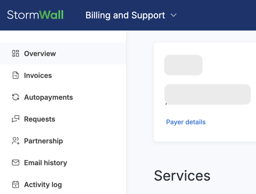To set up autopayment, open the Billing and Support section. In the main menu, select Overview.