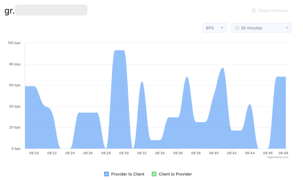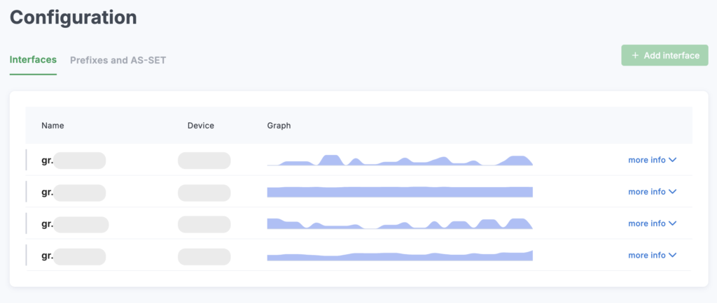On the Interfaces tab, click the Details button in the interface row. A traffic analysis chart will open.