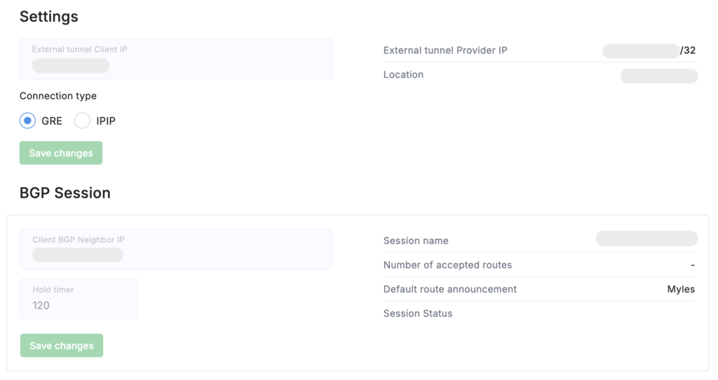 Below the chart, you’ll find the Settings and BGP Session sections.